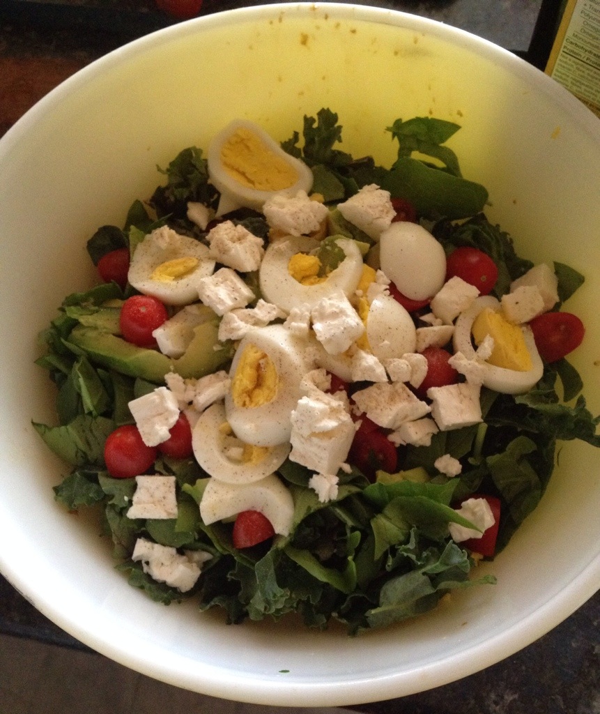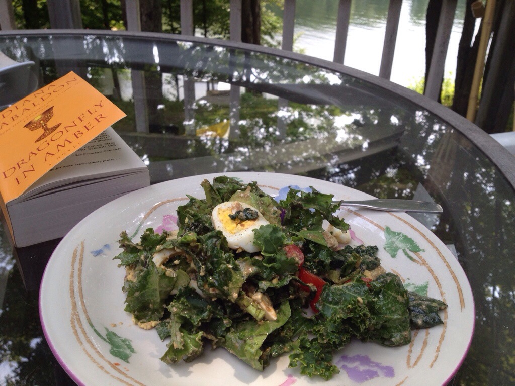 After swimming and playing at the lake, we were starving. The cottage kitchen is pretty rustic and not really well stocked but I managed to make this yummy kale salad for lunch.