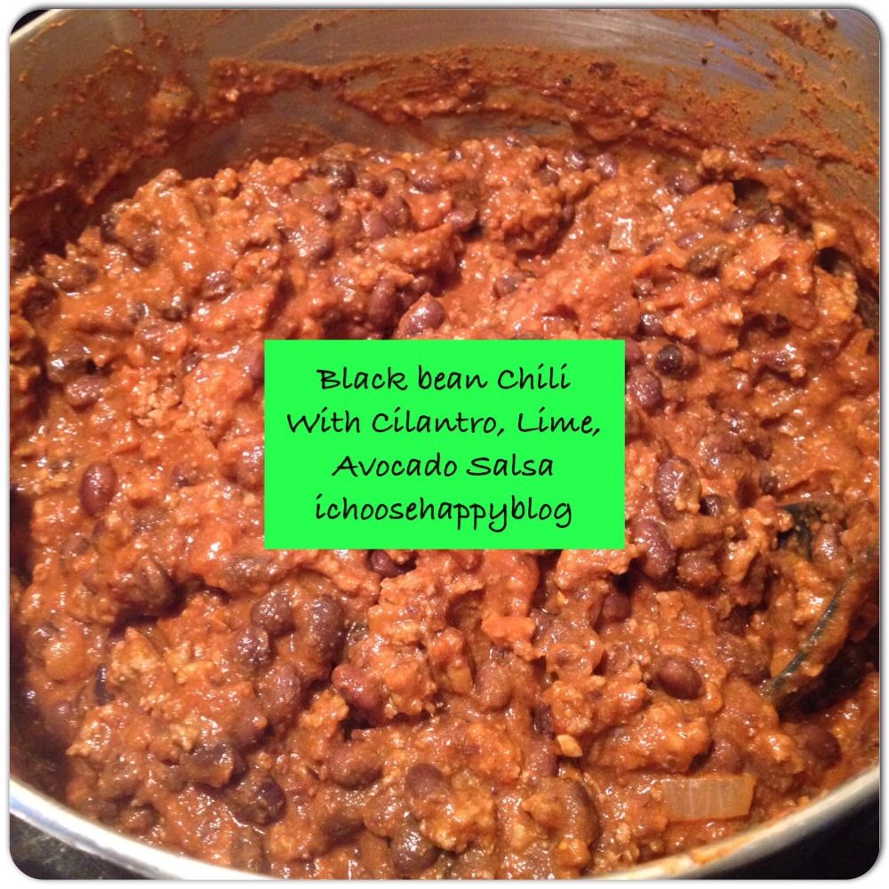 Another thing that made me super happy last week was my husband did some cooking so I didn’t have to! Yay Matt! He made my favourite chili and I ate it for lunch everyday last week. He made Black Bean Chili with Cilantro, Lime and Avocado Salsa. So yummy! You can find the instruction at http://www.kalynskitchen.com/2008/01/black-bean-and-beef-chili-recipe-with.html. The Avocado Salsa really adds to the whole Chili experience so don’t leave it out!