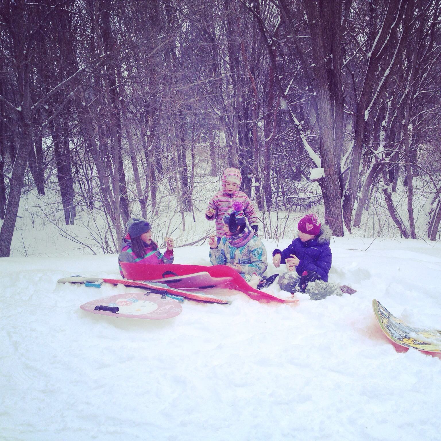 My kids (in spite of the extremely cold weather) have been organizing tobogganing parties. There is a small hill behind our house. My kids have been inviting their friends over to the hill the past couple weekends so I’ve been supplying the snacks. I can’t think of anything better than a warm chocolate chip cookie after a few sledding runs.