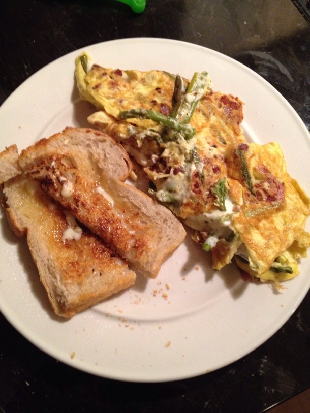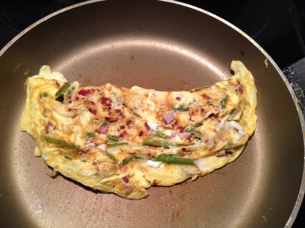 After a great boxing session, I want protein but I do draw the line at raw eggs! Lol! This week, I made an amazing Asparagus, Goat Cheese and Bacon Omelette. I made this with pretty much leftovers in the fridge.
