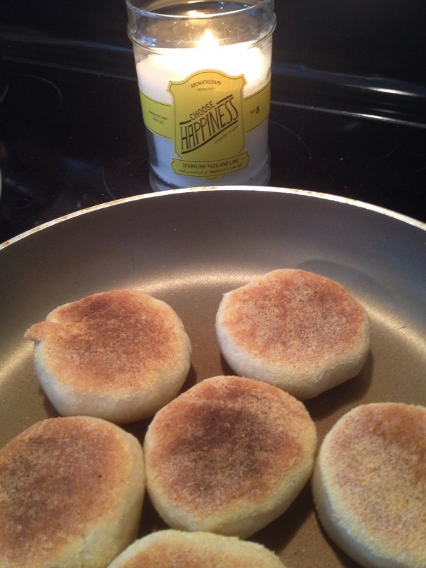 Here is an interesting fact about English muffins– did you know that you don’t bake them??? I had no idea that you cook them by frying them! Learn something new everyday! Ha!