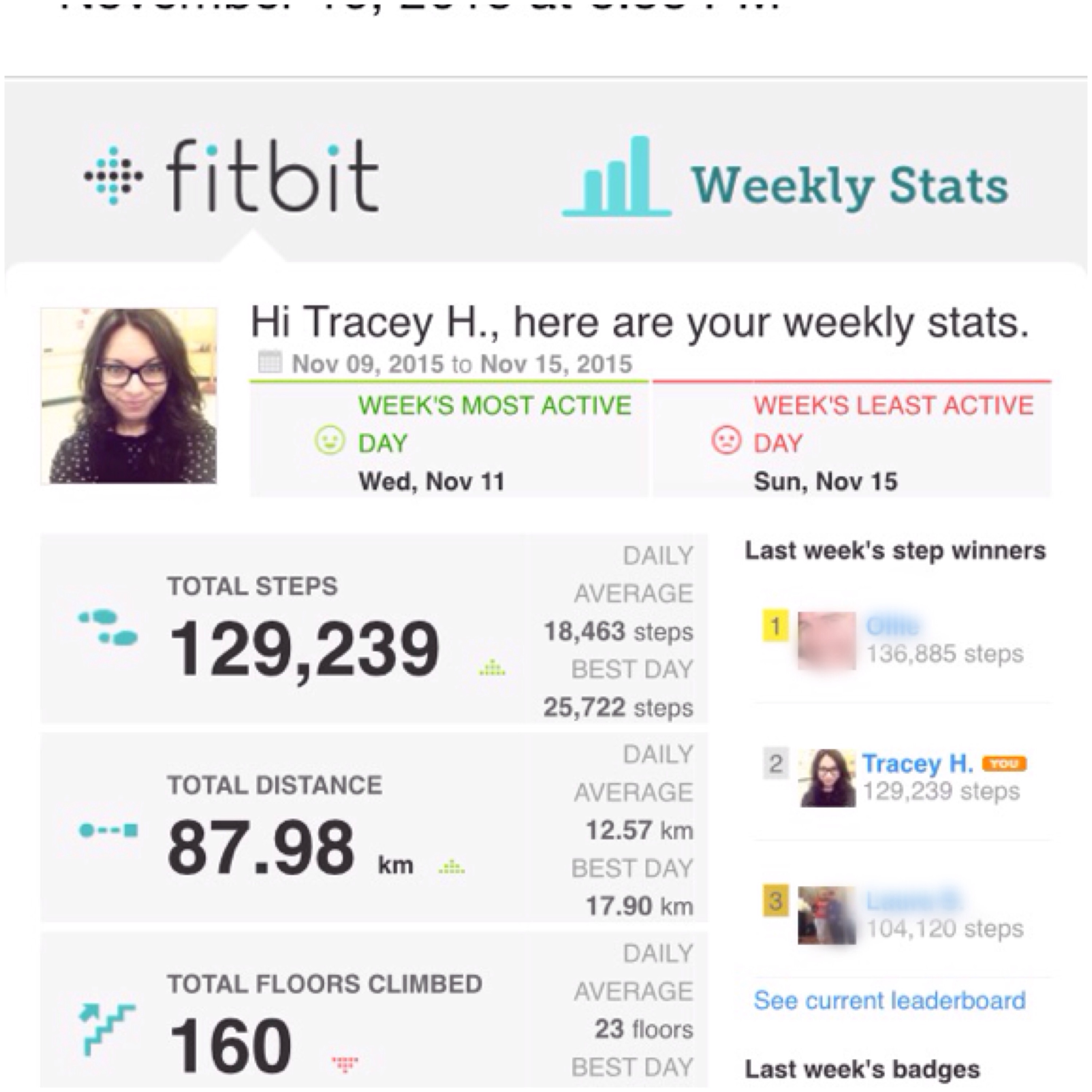 Fitbit is an activity tracker in case you’ve never heard of one. My Fitbit tracks my steps, heart rate, and sleep. You can also be “friends” with other Fitbit wearers. I’ve accumulated quite a few Fitbit friends and every week Fitbit sends you a leaderboard. There was this one guy who was always on the top of my leaderboard. One day, not sure why,but I decided I wanted to beat him- I wanted to get more steps than him! I didn’t tell him but I just started to ramp up my steps. I changed a few habits- I started getting out of bed earlier to take my dog for a walk, I started going to the gym more, I started walking during my daughter’s guitar lesson instead of sitting in the waiting room… These small lifestyle changes started to grow my daily step average. My steps started to climb from 10,000/day to 12,000, 15,000. I religiously checked the leaderboard- I watched the gap between me and the top spot shink each day. Then my Fitbit “leaderboard king” started to notice. One night, he mentioned my increase in steps to my husband! I was so excited. It turns out I was motivating him as much as he was motivating me!